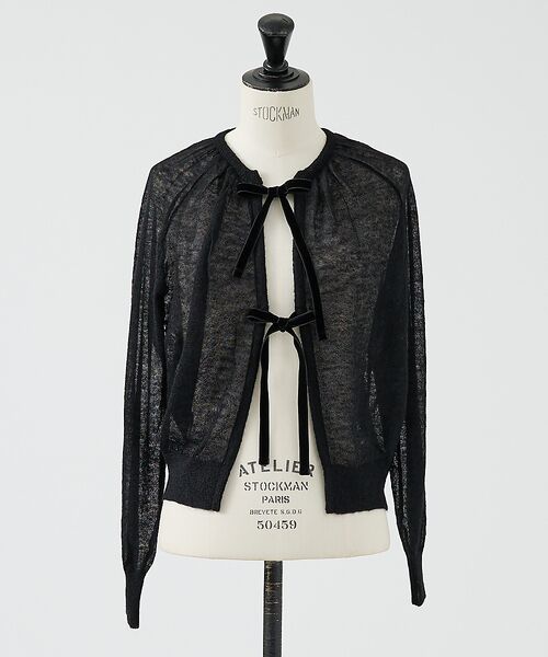 ベロアのリボンが2本付いた愛らしいカーディガン。
