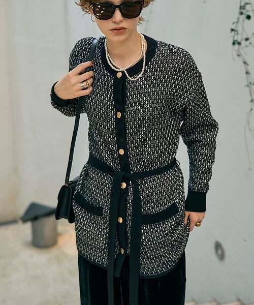 取り外し可能なニットベルト付きで、前を閉じてローブジャケット風にも、