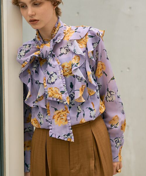 繊細なプリントが映える軽やかな素材感で、着心地も快適。