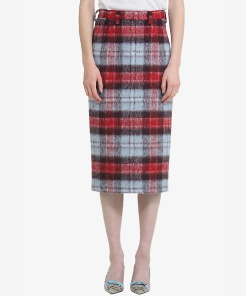 赤、ライトブルー、ブラウンのチェック柄をあしらった