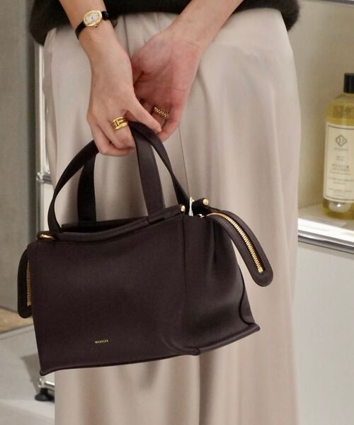 ゴールドの金具と洗練されたファスナーで仕上げられ、