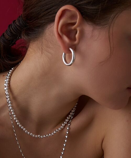 シルバー925の艶やかな光沢が凛とした強さを漂わせるフープピアス。