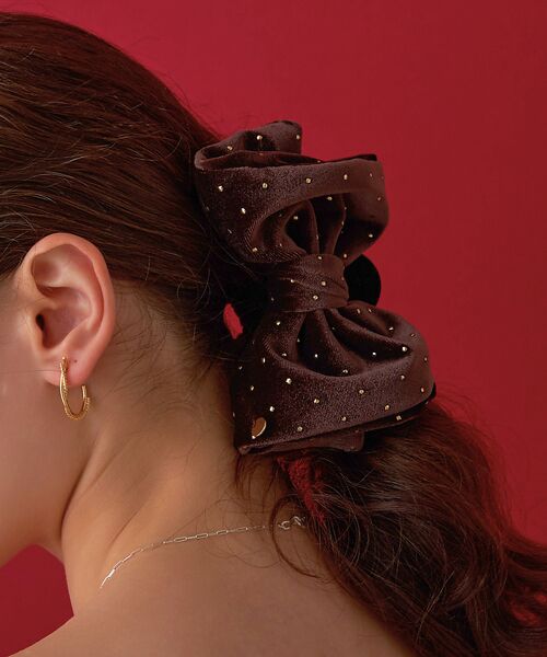 ベロアリボンのボリューム感が大人の魅力と可愛らしさを兼ね備えたデザイン。