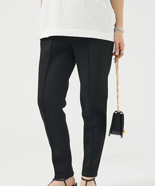 センターライン入りで脚をまっすぐきれいに見せるテーパードシルエット。