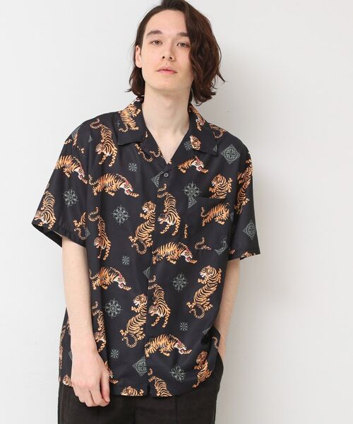 夏の定番でもある総柄オープンカラーシャツはコーディネートの主役になるアイテム。