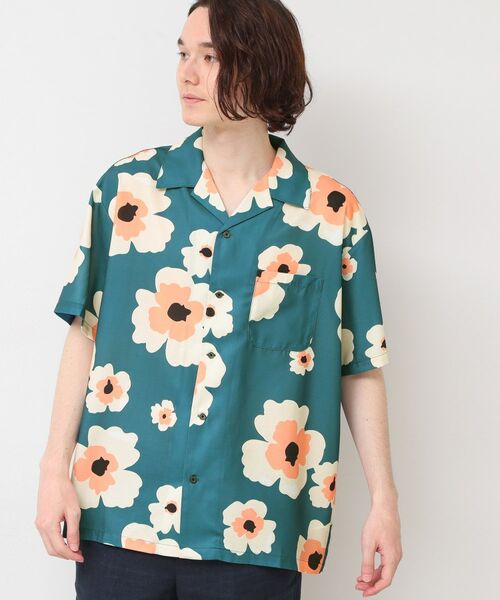 夏の定番でもある総柄オープンカラーシャツはコーディネートの主役になるアイテム。