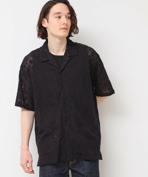 花柄の刺繍柄の入ったレース生地を使用したシャツ。