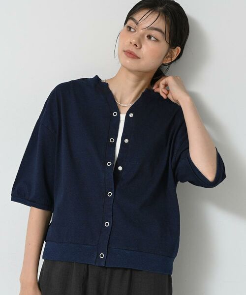 プルオーバーとしてもカーディガンとしても活用いただける、キーネックデザインのジャージカーディガンです。