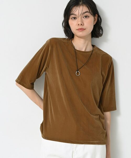 シアー感のあるベロア素材は秋のにおいを感じつつも涼しげな、今時期にぴったりの素材感です。