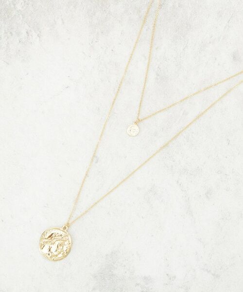 大きさが異なるコインモチーフのネックレスは2連使いできるタイプ。