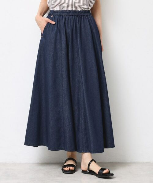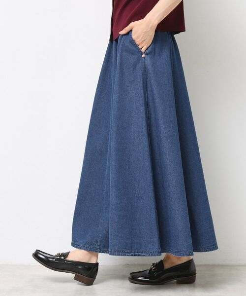 ナチュラルな風合いと程よい落ち感があり、デニムながらもフェミニンな印象に。