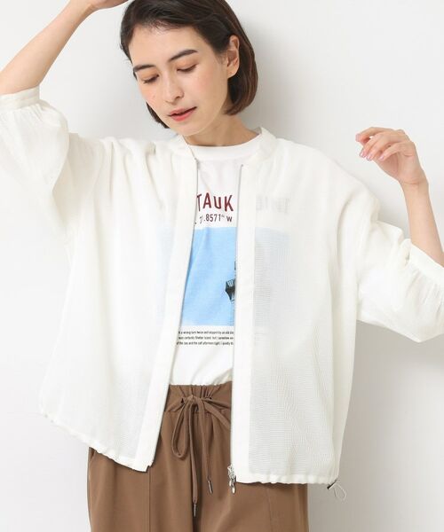 裾はスピンドルで絞りを調整できます。ノースリーブが苦手な方の羽織としてもおすすめです。