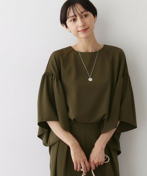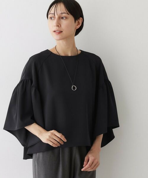 ゆったりとしたボクシーシルエットにひじ下からふんわり広がるフレアスリーブが特徴。