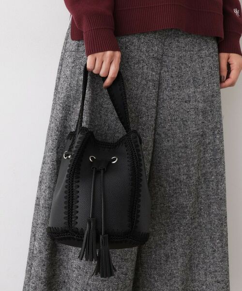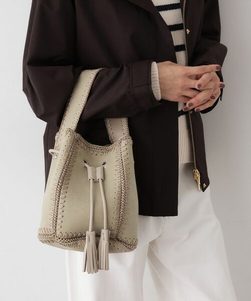 柔らかなスウェード素材と、シボ感のある合成皮革の2種類で展開する巾着バッグ。