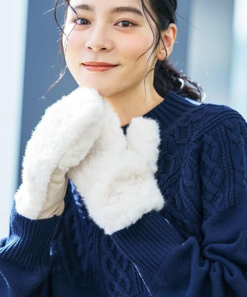 コーディネートのポイントになる優しい風合いのファーミトン。