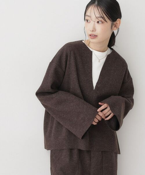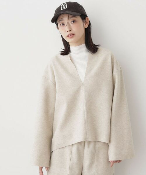 温かみのあるウールメルトンの様な見た目でありながら、ストレッチ性のあるジャージー素材で着心地の良さがポイントです。