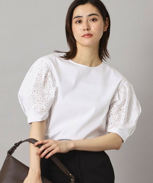 今シーズン注目のカットワークレースを使った袖コンシャスなデザインのカットソー。