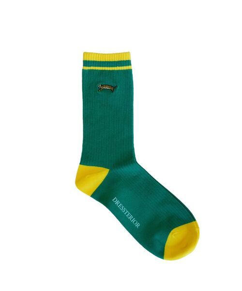 〈タイガー刺繍が目立つ遊び心があるソックス〉素材は、コットン/アクリル/ポリエステル/ナイロン/ポリウレタンという5者混の糸で編み上げているので、コットンのナチュラルな風合いの中に滑らかさがあり、ふっくらと軽い穿き心地です。左右それぞれにドレステリアの人気キャラクター タイガーを刺繍で表現し、底にはブランドロゴプリントを施し、オリジナリティのある一足に仕上げました。※照明の関係により、実際よりも色味が違って見える場合があります。また、パソコン・スマートフォンなどの環境により、若干製品と画像のカラーが異なる場合もございます。"本商品は、ご注文確定後に取り寄せにてお客様への出荷手配をさせていただきますので、お届けまでに7~10日前後かかる場合がございます。また、商品は他社サイトと在庫を共有しているため、ご注文いただいた商品が欠品となり、キャンセルとなる場合がございます。
