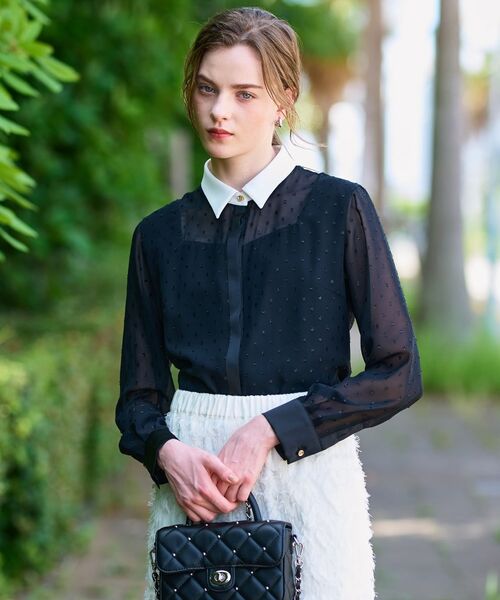 【フィルムドットの素材が華やかさを惹きたてるクラシカルなクレリックブラウス】