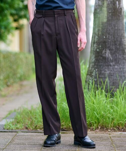 《ツータックセミワイドの美シルエット!単品使いでも活躍する先染めブラウンスラックス》