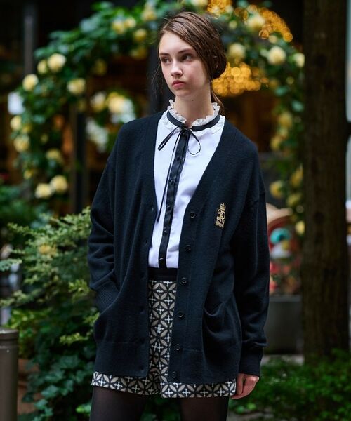 胸元に配したドレステリアオリジナルのワッペンが、程よいアクセントを添えるVネックカーディガン。