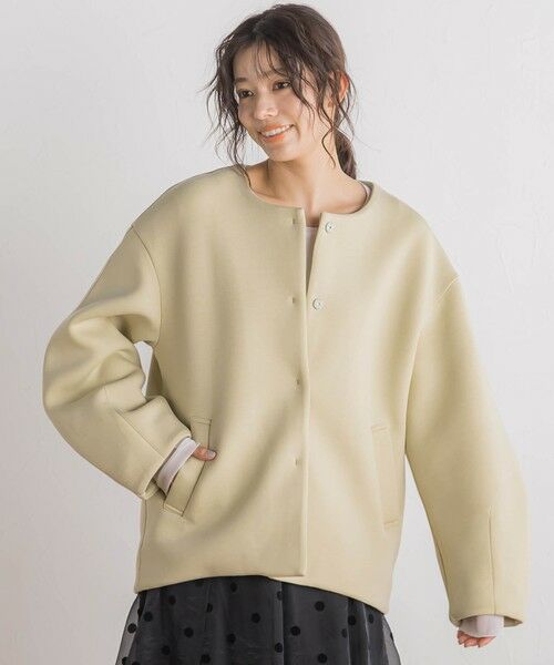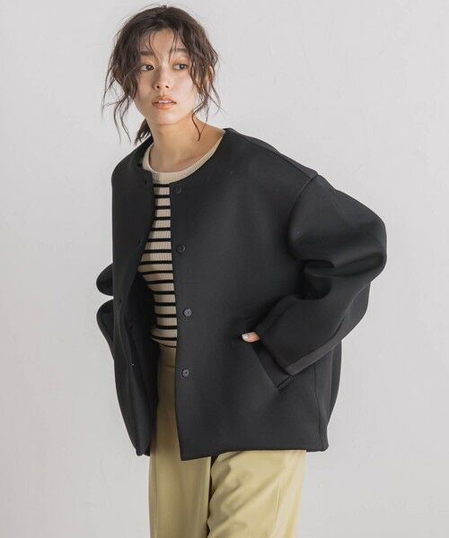 しっとりとした生地感が着心地抜群のノーカラージャケット。