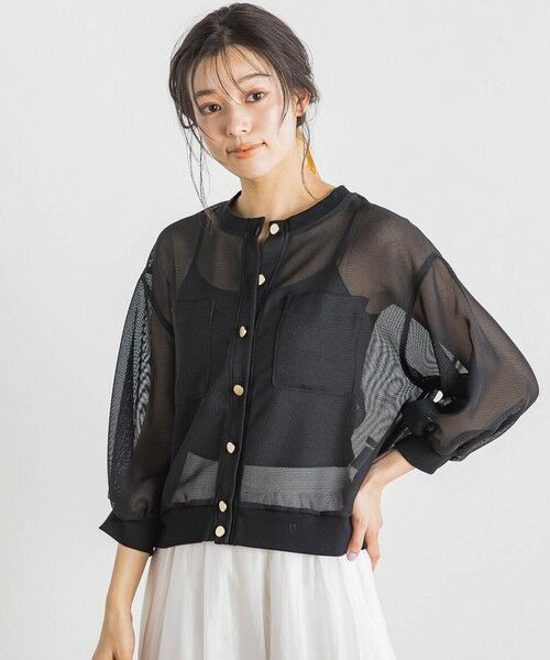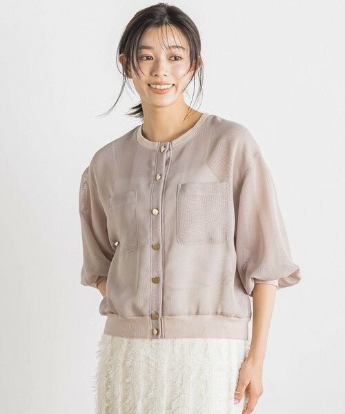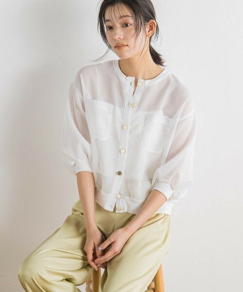 通気性がよく清涼感のあるからみ織りのメッシュ素材カーディガン。