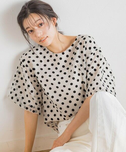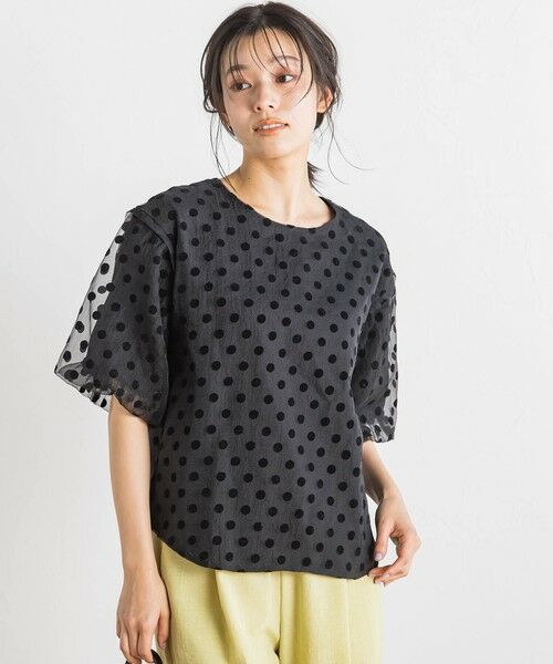 フロッキーのドットプリントが大人可愛いシアーブラウス。