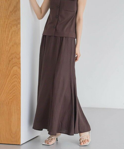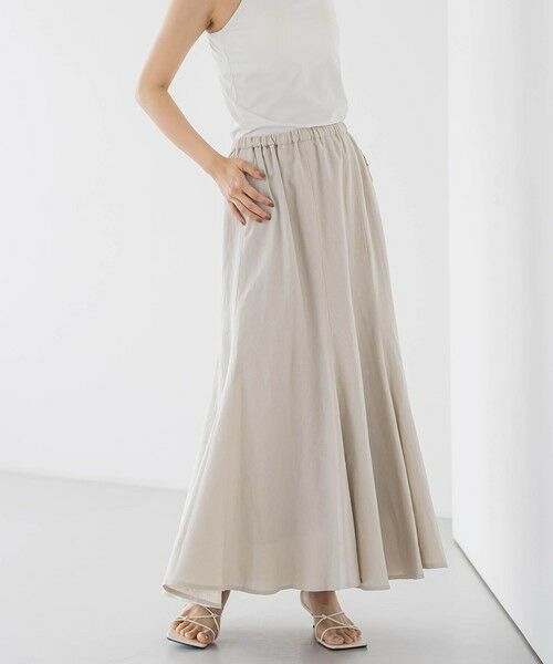 リネンの表情とレーヨン混の光沢がきれいめナチュラルなマーメイドフレアスカート。
