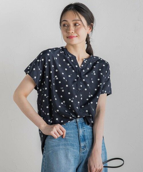 ドットのように散りばめられたチェリー柄が華やかなプリントブラウス。
