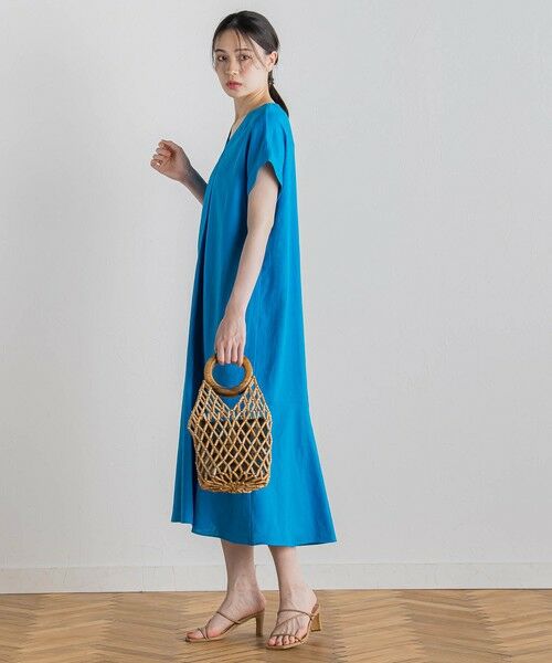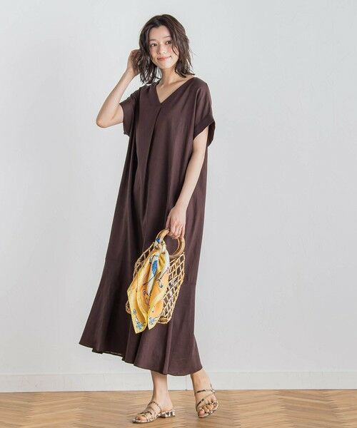 リネンの表情とレーヨン混の光沢がきれいめナチュラルなワンピースです。