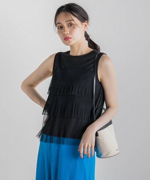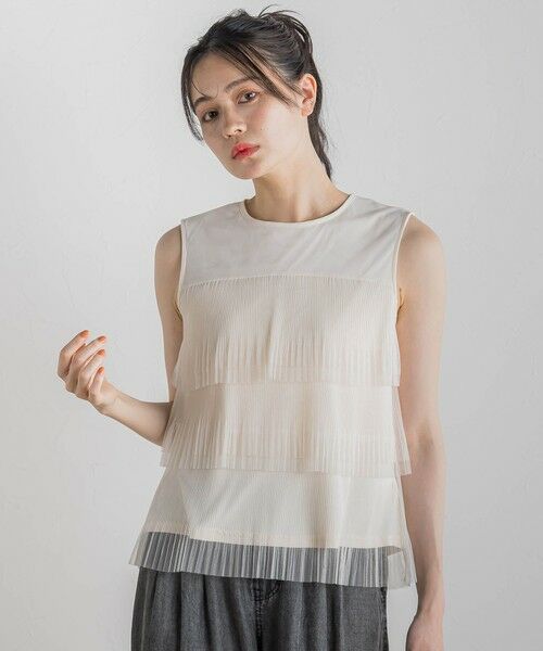 シアー感のあるチュールプリーツを重ねた軽やかなティアードブラウス。
