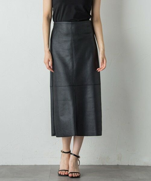 ムートンの様な見た目で、フェイクレザースカートを新鮮長過ぎないレングスできれいめスタイルにも合わせやすい1枚です。