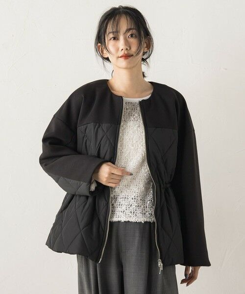 ダンボール素材×中綿キルティングの異素材ミックスジャケット。