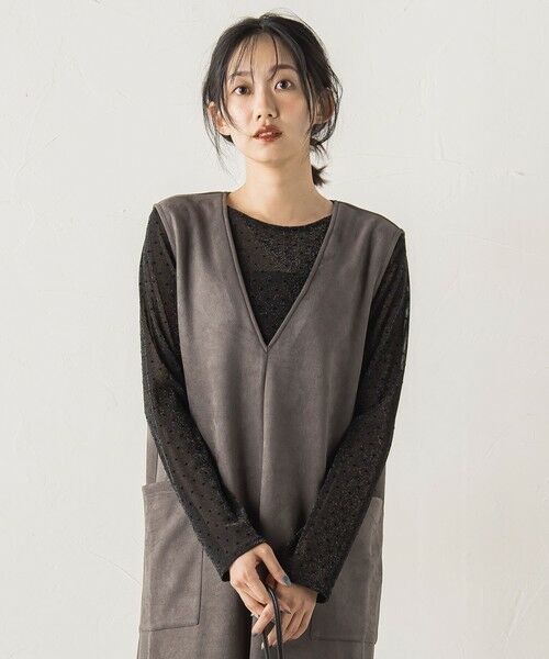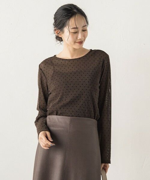 チュール素材に小さめのフロッキードットをプリントしたプルオーバー。