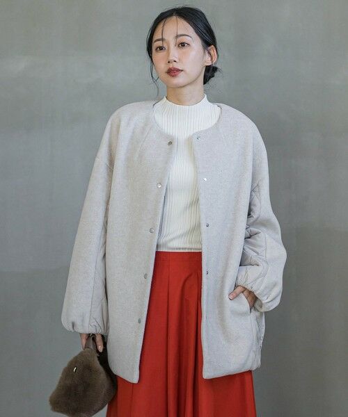ウールライク素材とキルティングをドッキングした気軽に羽織りやすいコート。