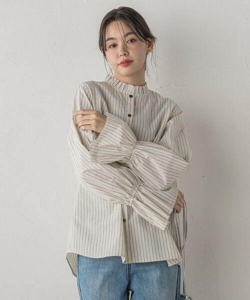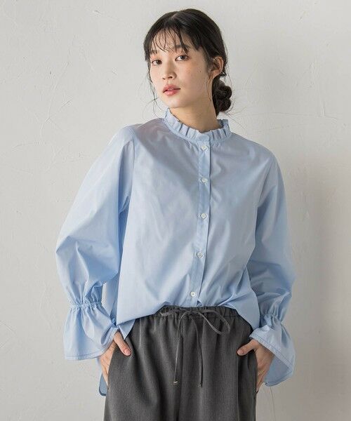 フロントボタンで着脱しやすく、1枚ではもちろん、ニットやカーディガンとのレイヤードでフリルを覗かせる着こなしもおすすめ。