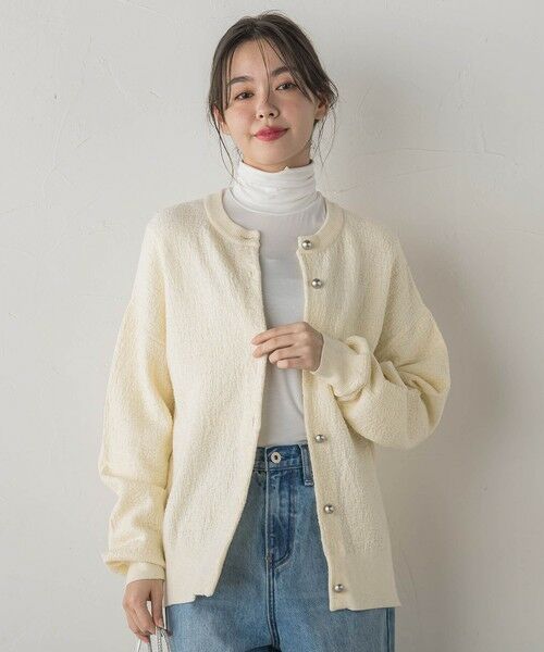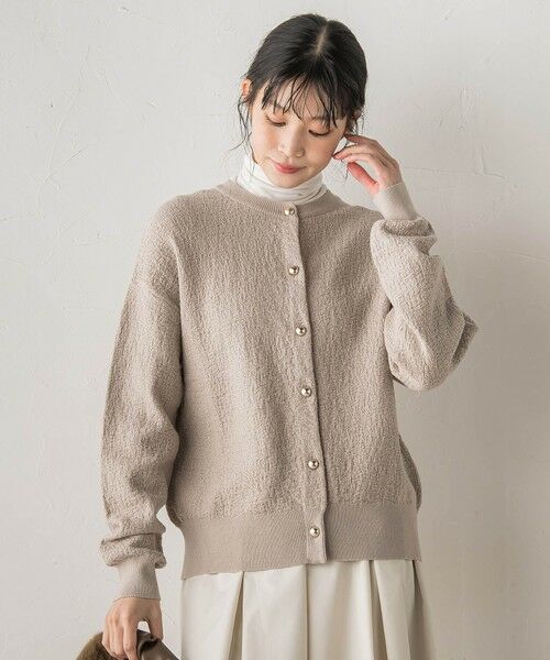 ぷくぷくとした表情が可愛らしいふくれジャガードニットカーディガン。