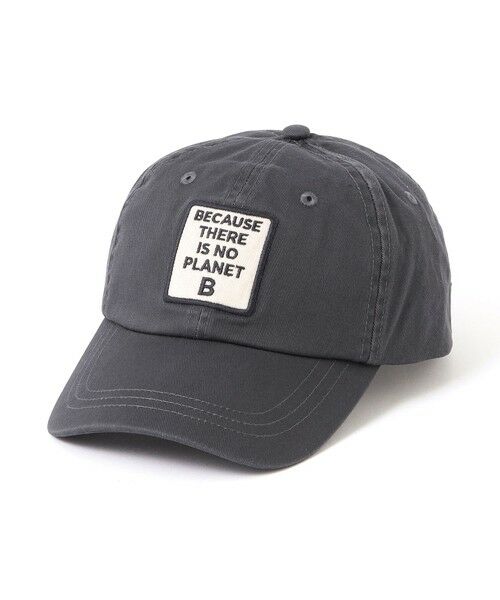 ブランドメッセージ【BECAUSE THERE IS NO PLANET B】のパッチをデザインしたキャップ。