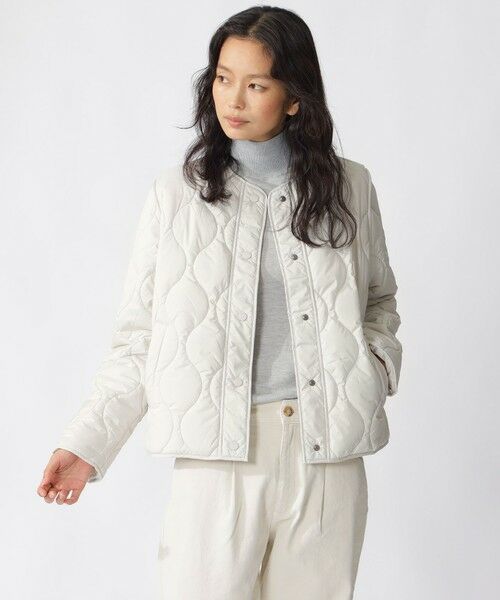 ボリューム感を控えたオニオンシェイプのキルトデザインと、クルーネック仕様により、すっきりとモダンな印象に。