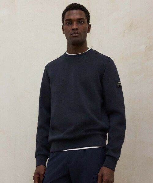クリーンな表情のダブルニット(ダンボール)素材は、滑らかな膨らみと程よいハリ感を兼備する快適マテリアルです。