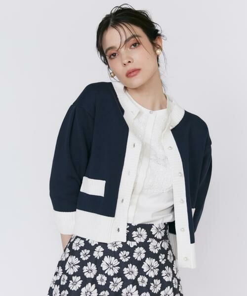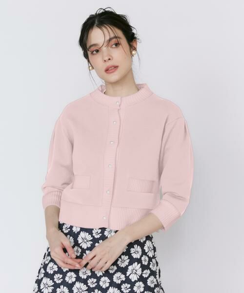 トレンドの短丈デザインに、肩の立体的なシルエットとパールボタンが特徴のクルーネックカーディガンです。配色が華やかな王道ネイビーとオリジナルの大人ピンクの2色展開で、コーディネートの幅が広がります。肘まで隠れる袖丈で二の腕をカバーしながら女性らしい印象に。ニットならではの立体感とコンパクトなシルエットが女性らしい印象を叶えます。柔らかく肌触りの良いミドルゲージニットは程よい厚みで季節をまたいで活躍。ハイウエストボトムスと合わせるとスタイルアップ効果も期待できます。スカートと合わせればフェミニンなコーディネートに、デニムと合わせればカジュアルなコーディネートに。様々なボトムスと合わせやすく、デイリーユースに活躍します。