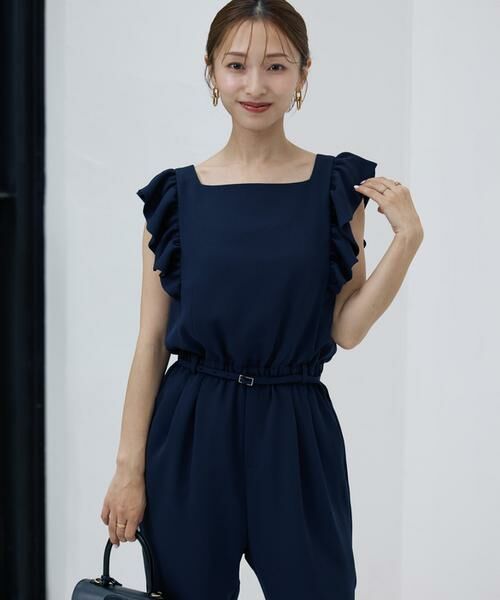 絶妙なスクエアネックが涼しげで、鎖骨や首回りを華奢に見せてくれるサロペット。トロミ感のある上質な梨地素材に、黒×白のドットプリントと無地ネイビーを組み合わせた、洗練されたデザインです。ウエストはゴム仕様でリラックス感があり、さらに拘りの細ベルトで調節可能。胸元の切り替え部分に施されたフリルが、腕を見せずに上品な印象を演出する大人のためのサロペットです。パンツ丈はくるぶし丈で、厚底やヒール、ローファーなど、さまざまな靴と合わせやすく、スタイリングの幅も広がります。