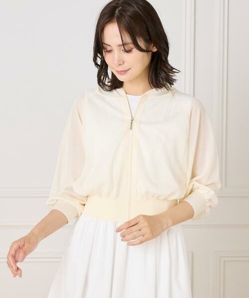 暑い季節に大活躍するシアー素材のニットパーカー。ワンピースやスカートスタイルにバランスよく羽織れるコンパクトなサイズ感と短めの着丈がMaglieらしい一枚。袖の程よいボリュームでフェミニンさをプラスしながら、シアーな素材感をより楽しんでいただけるデザインになっています。とても軽くかさばらないので持ち運びに便利で、冷房対策などちょっとした羽織りに便利な一枚です。