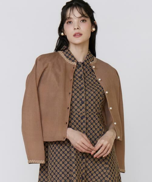 衿元にあしらわれた、透明感のあるファンシーヤーンのレースが目を惹くシアーカーディガン。コンパクトなサイズ感ながら、ほどよいハリ感があり、ジャケットライクなシルエットで一枚でもしっかりと存在感を放ちます。透けすぎない絶妙なシアー感と、さらりと肌離れする着心地の良さが魅力。落ち着いたトーンのカラー展開で、どんなシーンにもなじむ万能さもポイント。お揃いのインナーと合わせれば、アンサンブル風の上品なスタイルに。ワンピースやスカートに羽織ってフェミニンにも着こなせます。