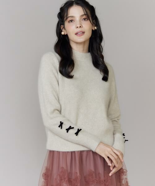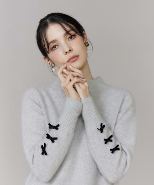 配色ベロアリボンがアクセントになったボトルネックプルオーバー。チクチクしない柔らかなフォックスにシルクをブレンドすることで、より滑らかでふんわりとした上質な風合いに。Maglieのスカートに合わせやすいコンパクトなシルエットで、インしなくてもバランスよく着こなせるジャスト丈に仕上げました。これからの季節にぴったりで、コートのインナーとしても活躍間違いなしの一着です。