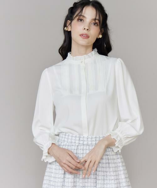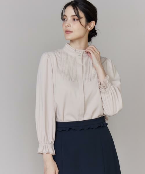 マットな質感と程よい落ち感をもつ梨地ジョーゼットを使用し、しなやかな表情と上質な風合いを両立させたブラウス。オフホワイトと、Maglieらしい優しいピンクのオリジナルカラーで展開します。フロントには細やかなピンタックとピコフリルを施し、縦ラインを強調することですっきりとした印象に。襟元や袖口にもピコフリルをあしらい、控えめながらも華やかでフェミニンなアクセントを添えました。一枚でもレイヤードでも着映えし、オン・オフ問わず活躍。クラシカルな品格とモダンな軽やかさを兼ね備えた、ワードローブに加えたい一着です。