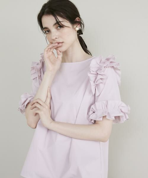 デコラティブなフリルが華やか×モードなプルオーバーブラウス。タックとギャザーを駆使した大胆フリルを肩と袖にあしらい、スッキリ感のあるAラインシルエットと長めのハーフスリーブで今どきなバランスに仕上げました。大き目にあけた袖口が風を通し涼しく着られて、程よいストレッチとイージーケアで扱いやすさも魅力的。一枚着としてもインナーとしてもお使いいただける着映え感たっぷりの一枚です。