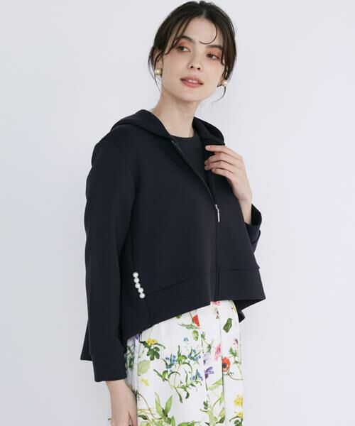 大人可愛いフリルパーカーの新作は脇に大粒パールをあしらい更にアップデート。立体的なティアードフリルが可愛いバックシャンデザインです。フロントは短め丈ですっきり、後ろ裾にかけて徐々に着丈を長くしたフレアシルエットが特徴的で、見る角度によって異なるすっきりシルエット。ふんわりと柔らかく膨らみのあるダンボール素材はオールシーズンでの着用が可能です。羽織りとしてもジップを上げてプルオーバーとしても使えるので、着こなしの幅が一気に広がります。スカートやワンピースをカジュアダウンさせたり、パンツを合わせた脚長見えのスタイルアップコーデもおすすめです。
