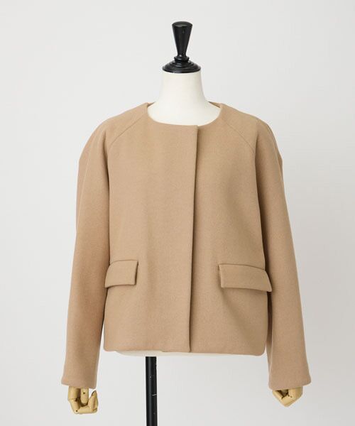 張り感と柔らかさのあるダブルフェイスウール素材。前はラグランスリーブで後ろはセットインスリーブにすることで袖の可動域を広げつつもすっきりしたラインをキープしたエレガントなブルゾンに。■サンプル撮影商品画像の商品はサンプルです。実際の商品とはサイズや色味、素材、デザイン等の仕様が若干変更になる場合がございます。■カラーについては、可能な限り実際の商品に近いカラーにて撮影をおこなっておりますが、照明の関係により実際の製品とは色味が違って見える場合があります。またパソコン・スマートフォンなどの環境により、若干製品と画像のカラーが異なる場合もございます。現物と画像のカラー差異については返品理由となりませんので、予めご了承ください。■サイズ表記はあくまで目安となります。